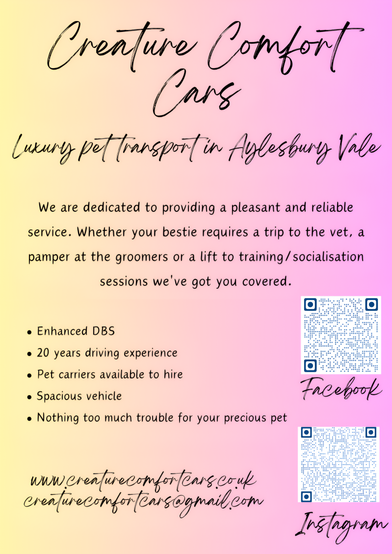 Luxury Pet Travel in Aylesbury Vale. We are dedicated to providing a pleasant and reliable pet transport service. Whether your bestie requires a trip to the vet, a pamper at the groomers or a lift to training/socialisation sessions we've got you covered.